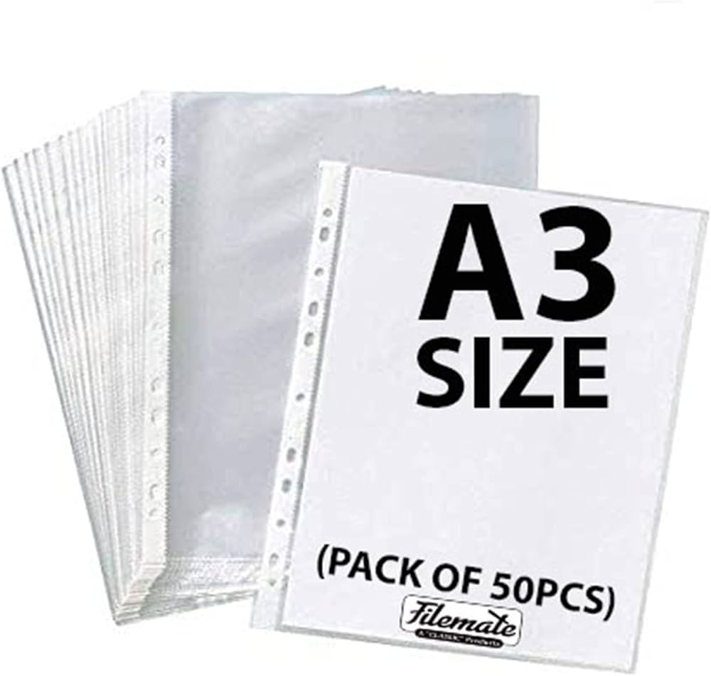 Transparent A3 size protector sheet for protecting and organizing documents, suitable for office, college, and presentation use.